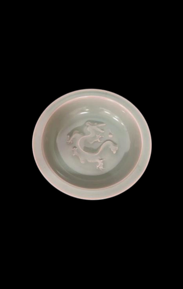 宋代时期龙泉窑龙纹折沿盘