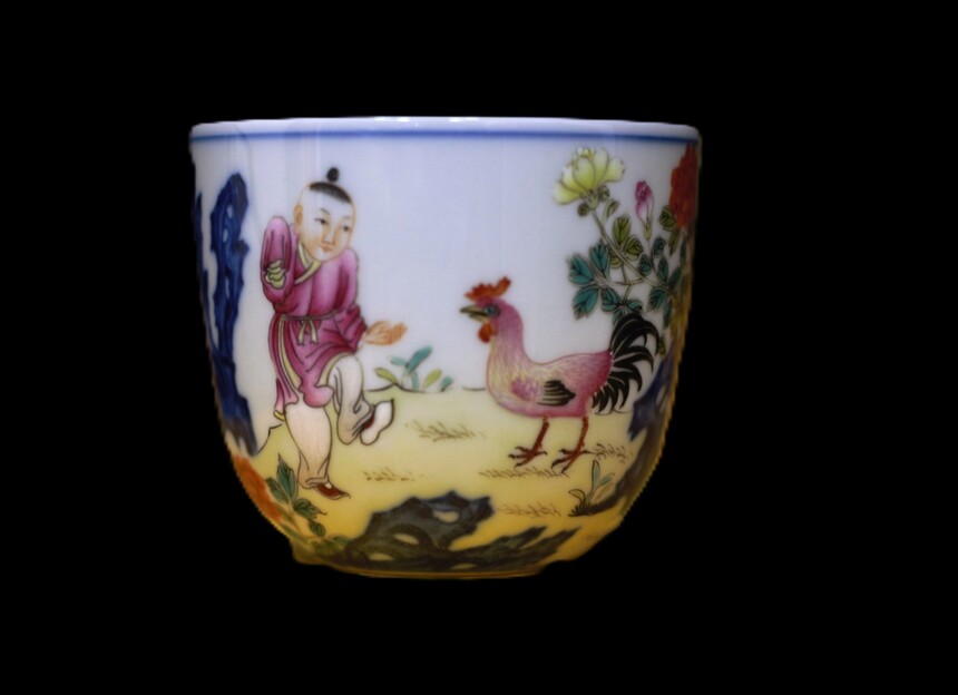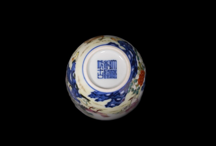 乾隆青花粉彩诗文鸡缸杯