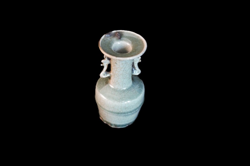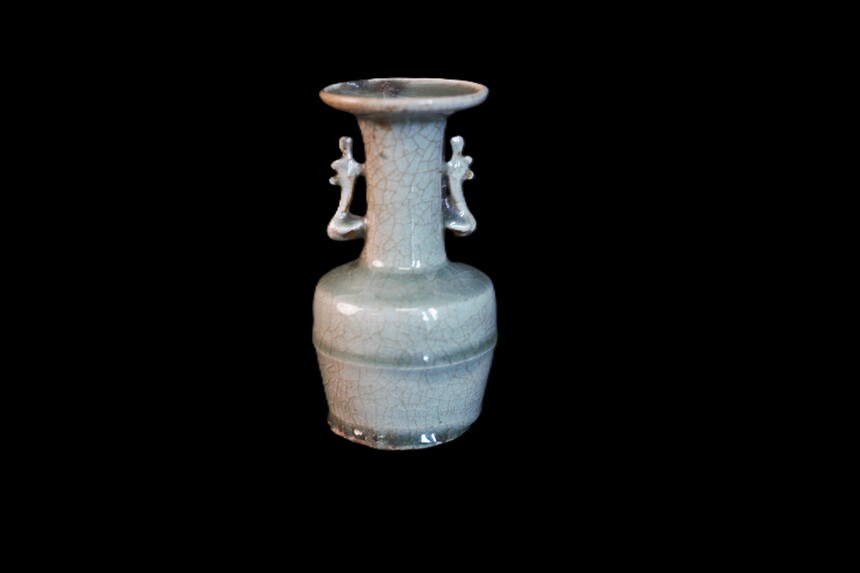 宋晚 龙泉窑 青釉双耳盘口瓶