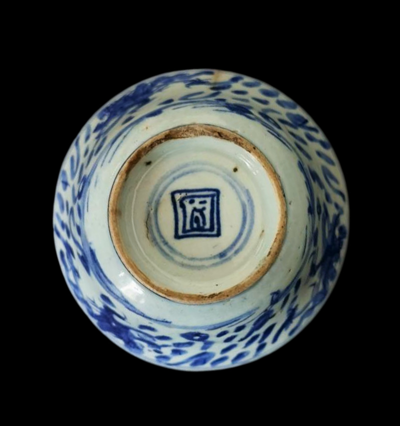 宋 定窑绿釉 刻花描金婴戏纹碗