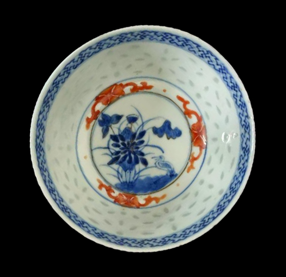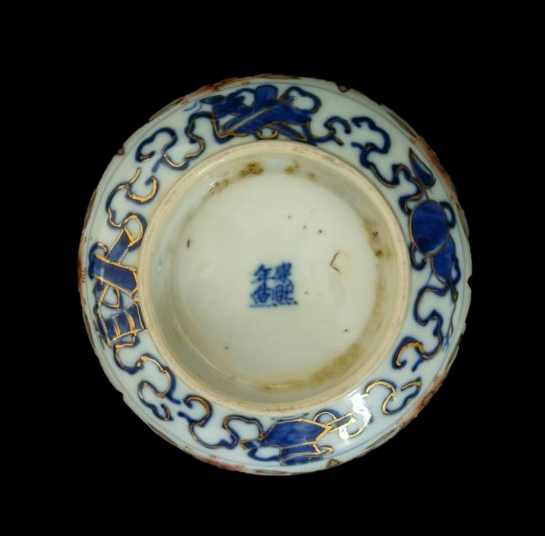 康熙 珐琅彩镂空 青花玲珑瓷描金碗