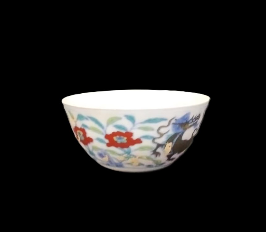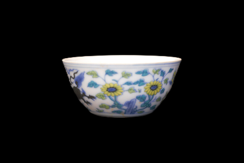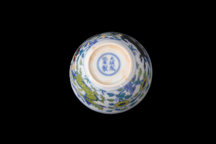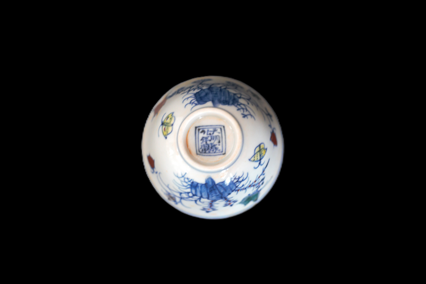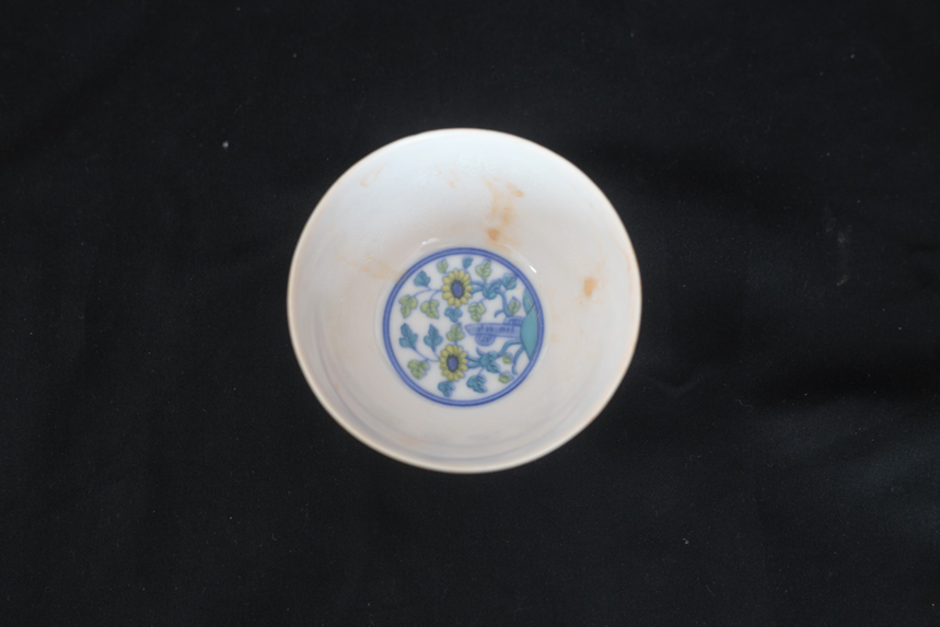 明代成化 斗彩鸡缸杯、三彩杯一组