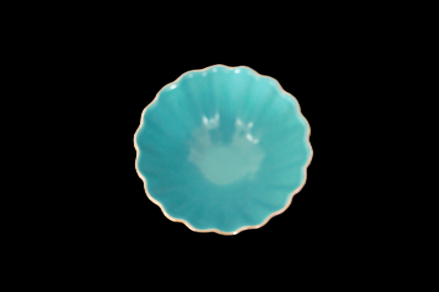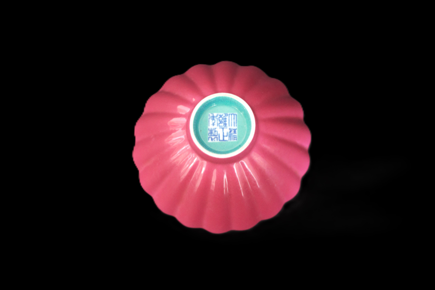 清代外胭脂 内 松石绿葵口碗