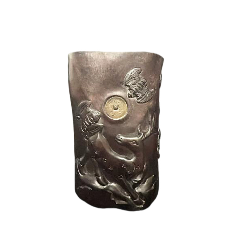 清 福禄寿纹红木笔筒