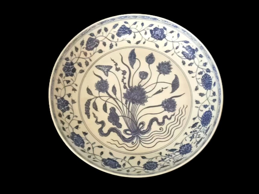 明 宣德 青花抱月瓶 青花花卉纹盘