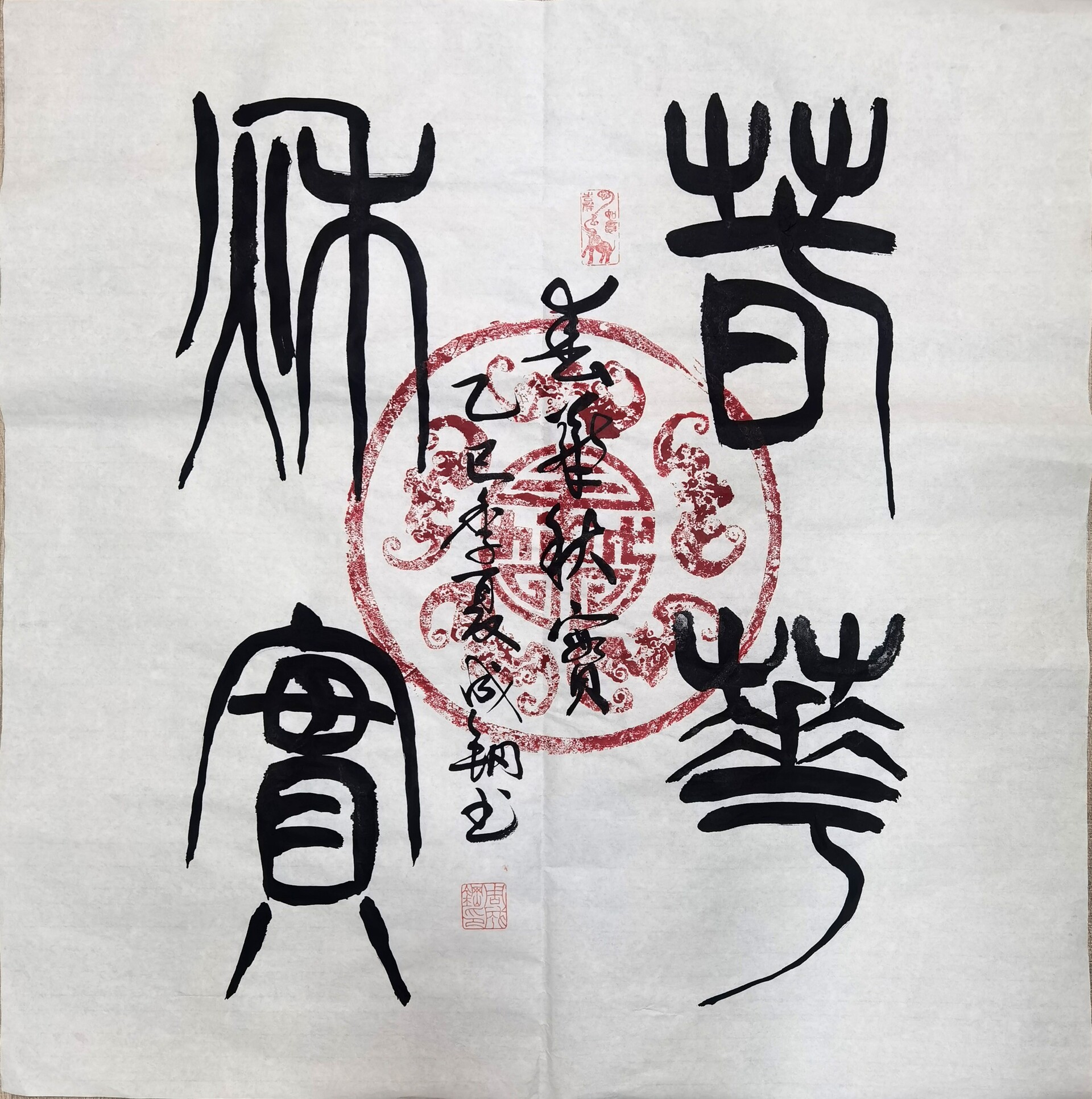 非遗文化传承创新人周成钢,字笑铁。五十六载染墨情缘,童年青年时期在艰苦年代苦练书画,八十年代初开始参与全国书画征稿,多次入选获金、银、铜牌奖。作品曾在钓鱼台国宾馆、山东、安徽、常州等地展出,2004年加入山西河津画院院士,2006年4月加入中国书画家协会理事。2024年10月参加全国“墨海杯”书画大赛获二等奖,被北京墨海书画院聘为院士,目前共有三个画院聘为院士。2025年7月参加中国国际教育电视台主办,在外国驻华使馆联办非遗文化交流,原创作品被多位海外大使收藏,并当场演示交流和接受中国国际教育电视台采访。2015 年探讨书法向古文字篆书的创新写作目标移位,为了探讨字的立体感,动感和张力,研探用原创纯手工刻印的紫砂瓦当图案作为字的背景,让有“中国美”的瓦当图案与线条美的书法相融合,相得益彰。加之多年练就的独特功力,形成罕见的三维书法艺术特点。深受同仁爱好者和收藏家的赞评。书画乐趣还催生我发明书画用具的念头,于2015年创意的“书画移纸台”获实用型国家专利。最近为传承并创新成为自成体系--“成钢瓦当篆书”,正在申报瓦当书法版权专利。近期中国国际教育电视台邀约我参加2026年1月12日“全球非遗春晚”。