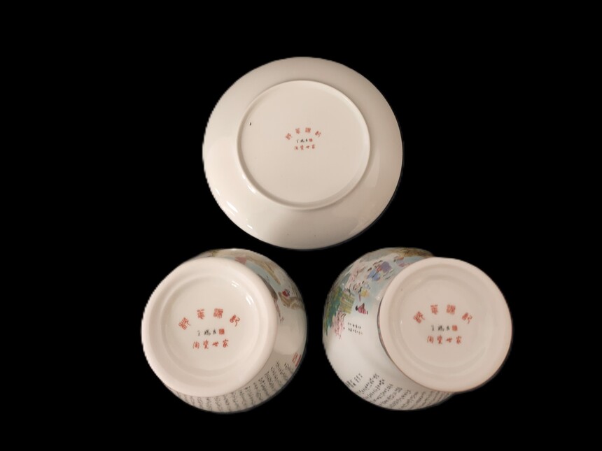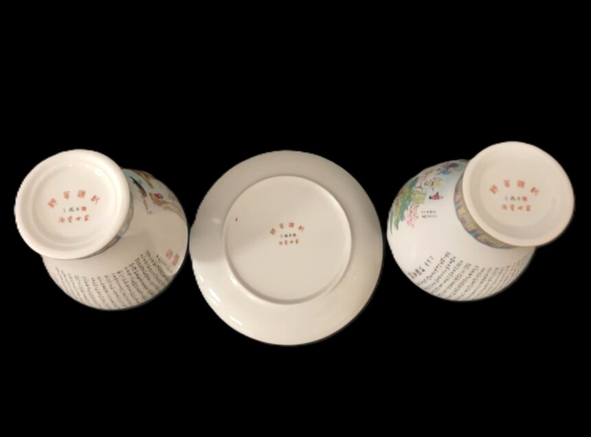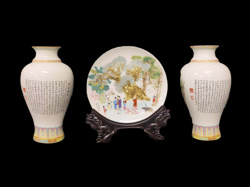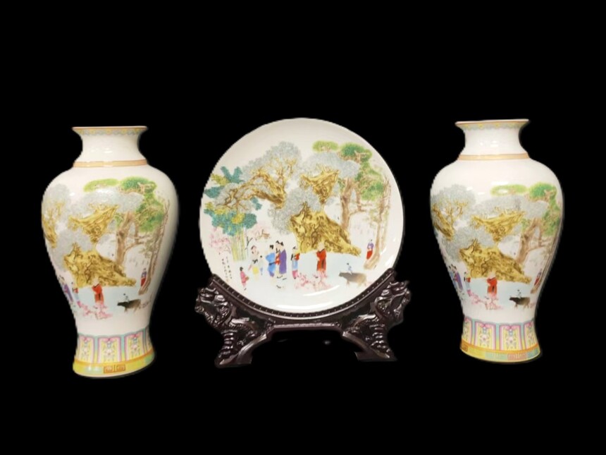 当代 王锡良粉彩 瓷器三件套《桃花源记》