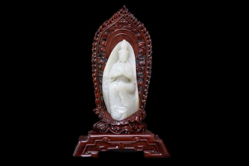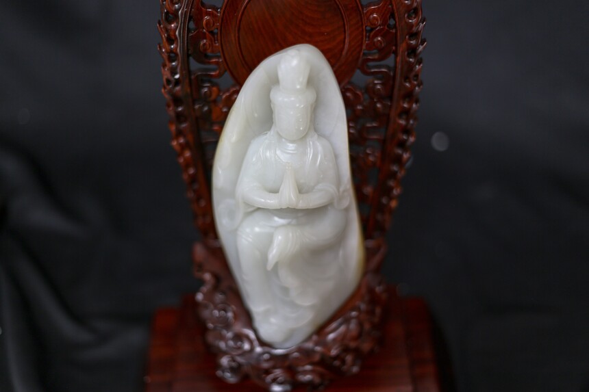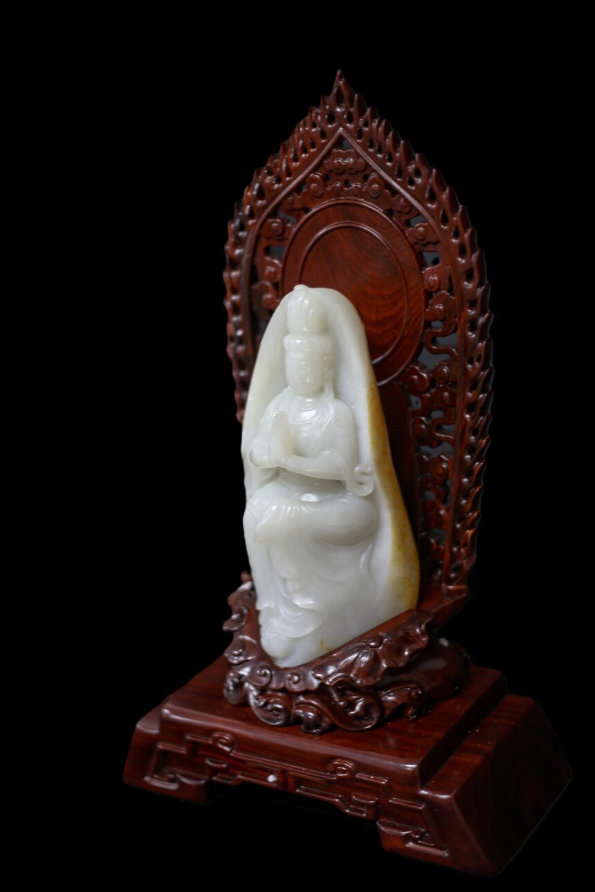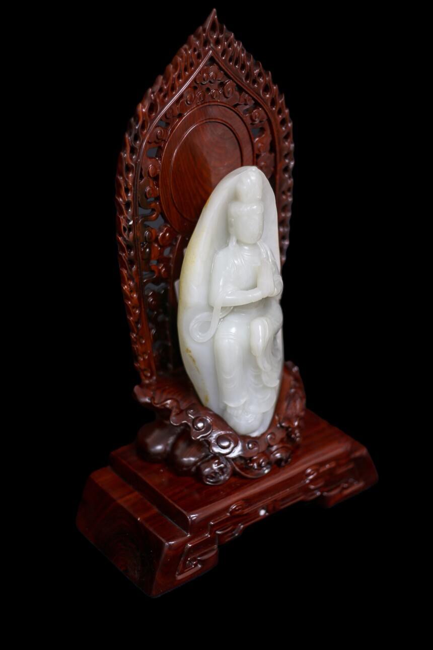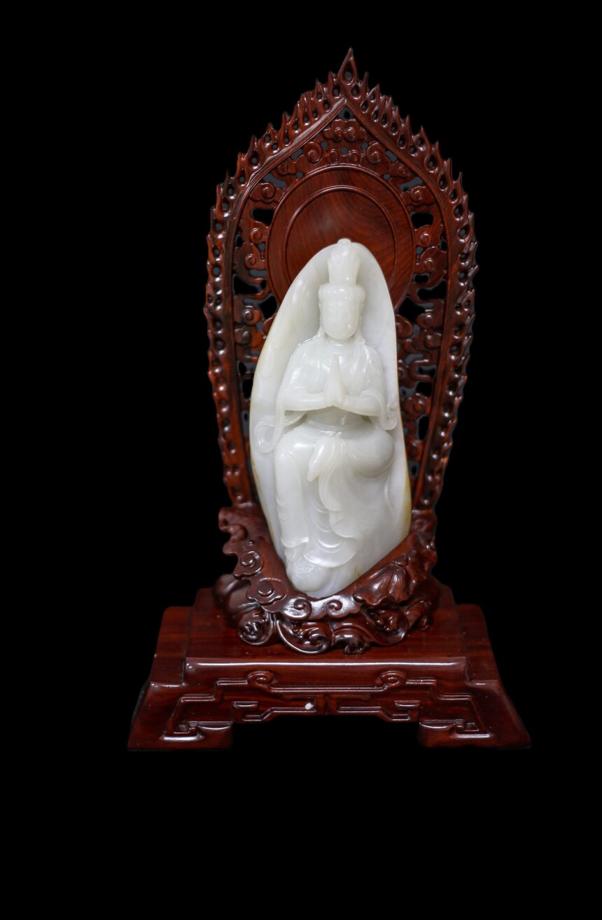首页 >> 拍品展示 >>玉器类 >> 和田白玉步步生花观音