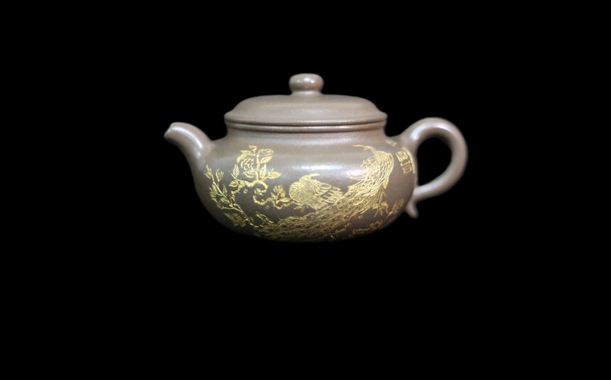 关山月作为著名画家,其在壶身的刻字作画是此壶的一大亮点。刻字内容或为紫阳诗社相关的诗词佳作,字体风格或古朴厚重,或灵动洒脱,与壶身造型相得益彰,增添了浓厚的文化气息。作画方面,凭借其深厚的笔墨功底,在壶身有限空间内,勾勒出栩栩如生的花鸟、山水等画面,通过墨色浓淡变化营造出丰富的层次感和深远的意境,仿佛将观者带入画中世界,让紫砂壶从单纯的工艺器物升华为兼具书画艺术价值的珍品。