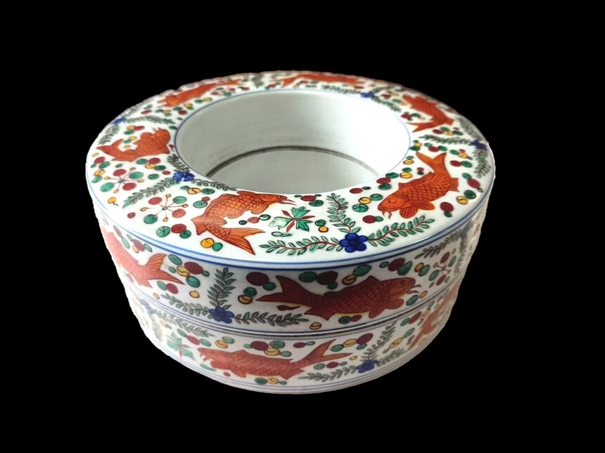 明嘉靖 五彩鱼藻纹朝珠盖盒