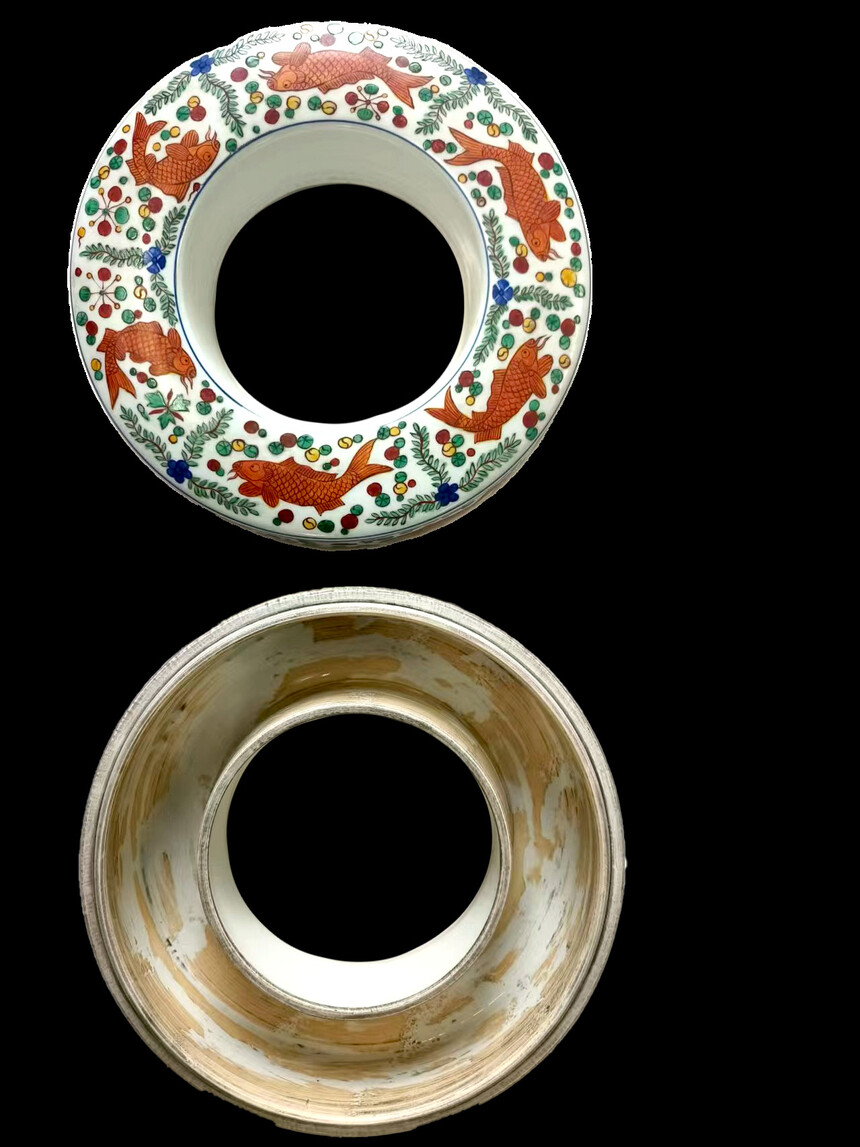 首页 >> 拍品展示 >>瓷器类 >> 明嘉靖 五彩鱼藻纹朝珠盖盒
