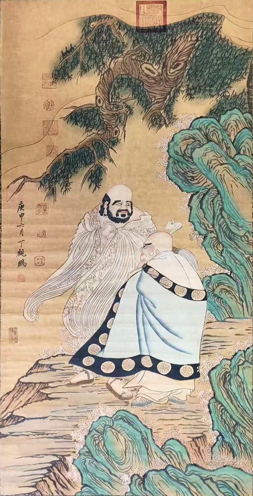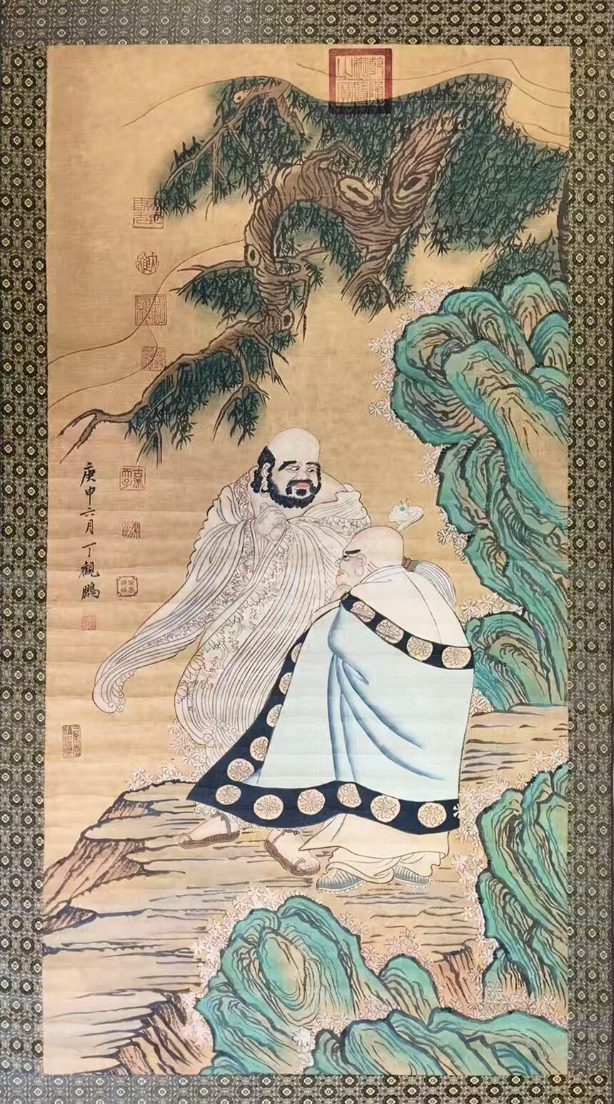 在中国古代绘画艺术的长河中,清代宫廷画家丁观鹏的佛画作品如一颗璀璨明珠,以其精湛的技艺、浓郁的宗教意蕴与独特的艺术风格,成为艺术市场与收藏领域的焦点。其中,他的罗汉图系列更是兼具艺术价值与市场潜力,堪称清代佛画创作的典范之作。 丁观鹏的清代宫廷佛画 丁观鹏(1736年—1795年),清代画家,艺术活动于康熙末期至乾隆中期,顺天(今北京)人。 丁观鹏是清代雍正、乾隆年间的宫廷画家,供奉于南薰殿,擅长人物、佛道、山水,尤其精于佛画创作。清代宫廷对宗教艺术的重视,为佛画的发展提供了土壤,丁观鹏在继承传统佛画技法(如唐代吴道子的“吴带当风”、宋代工笔重彩)的基础上,融入宫廷绘画的精细雅致,形成了自身独特的风格。 他的罗汉图多以佛教典故为蓝本,刻画罗汉的形貌、神态与所处的山水境界,既体现了对佛教文化的深刻理解,又展现了清代宫廷绘画的工艺水准。画面中,罗汉形象或庄严肃穆,或诙谐生动,山水背景工细入微,色彩富丽而不失典雅,是宗教信仰与艺术审美融合的产物。