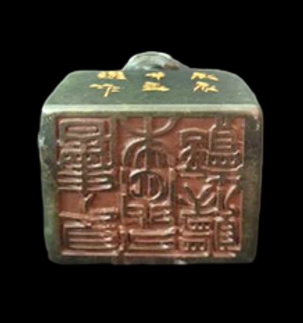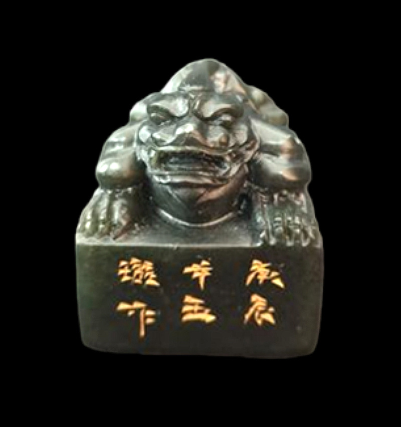 当代 寿山石 艾叶青描金貔貅印章
