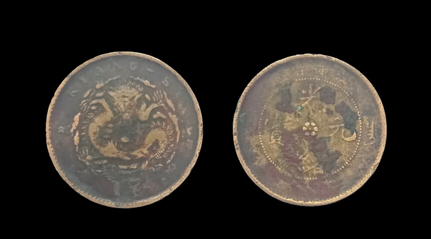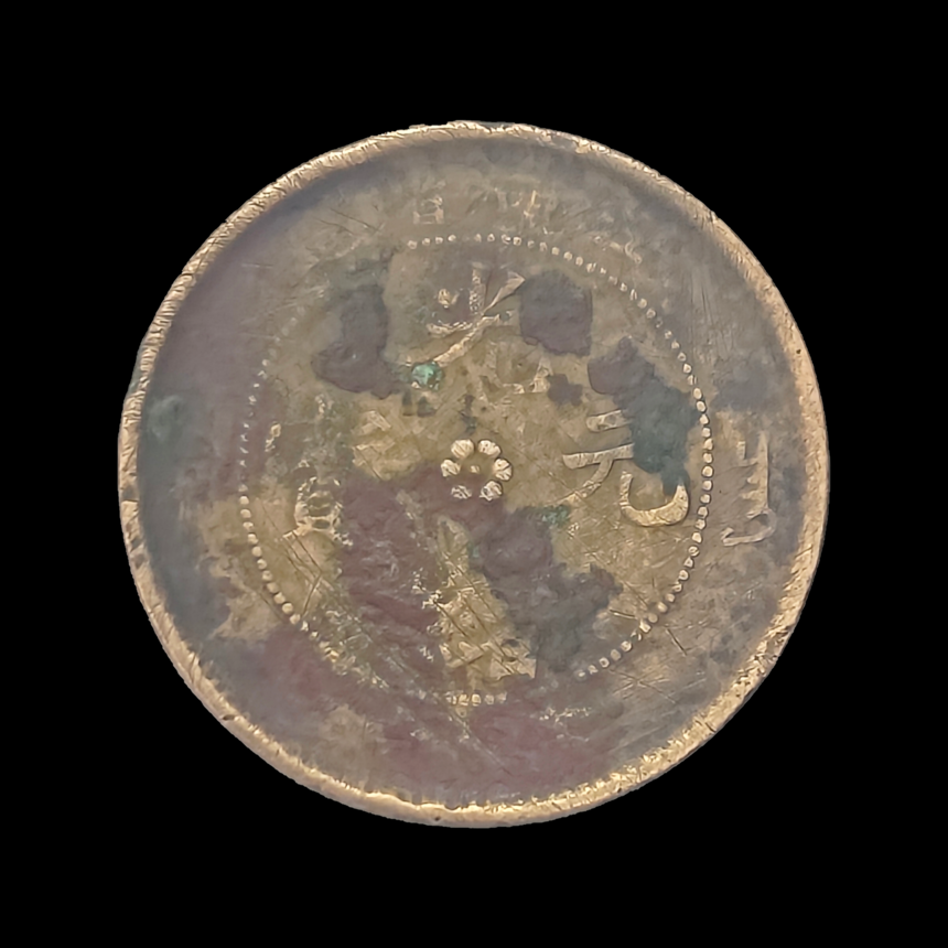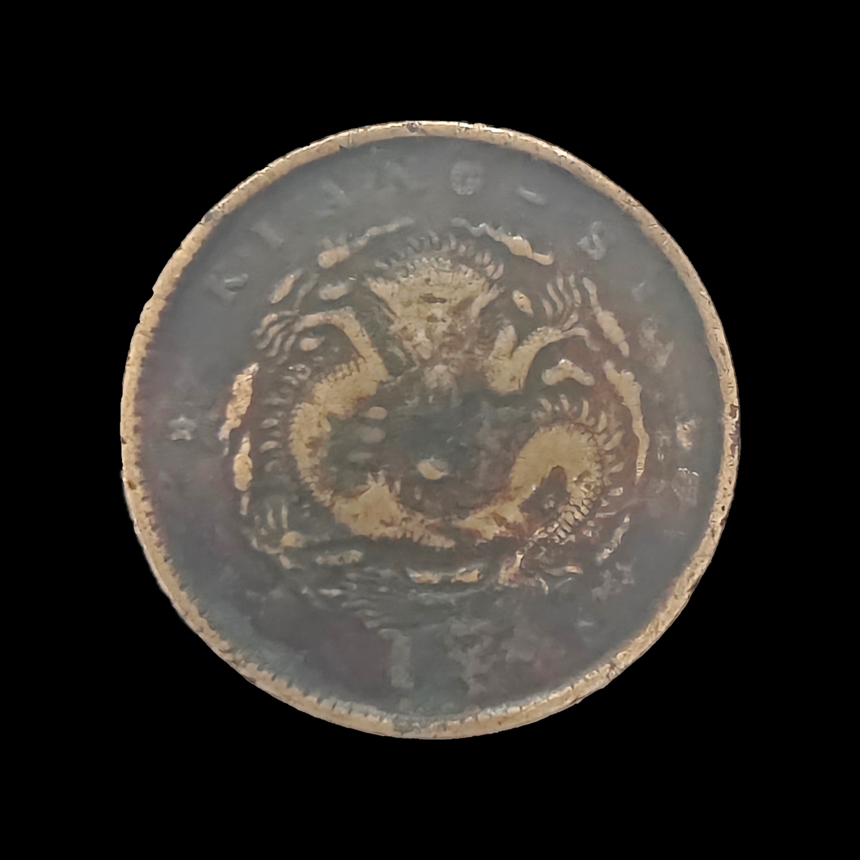 (小背逆9度) 规格:重7.03g 尺寸:直径28mm 龙纹雕刻将威严与灵动熔于一炉:坐龙的静态盘踞展现皇权肃穆,龙鳞的精细刻画暗藏工匠巧思,双星的点缀则赋予冰冷金属以星空想象。文字与图案的排布更暗合中式美学 —— 正面 “光绪元宝” 居中控轴,背面龙纹左顾右盼,背逆的角度非但未破坏平衡,反而增添视觉张力,成为晚清机制币中 “有意无意” 的艺术典范。
