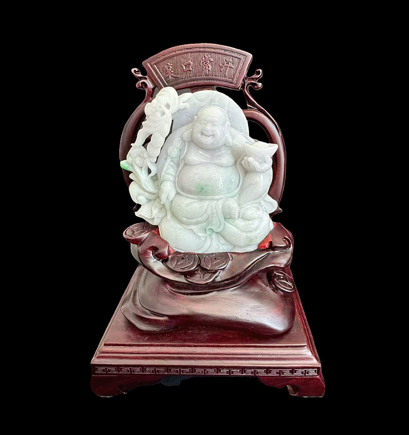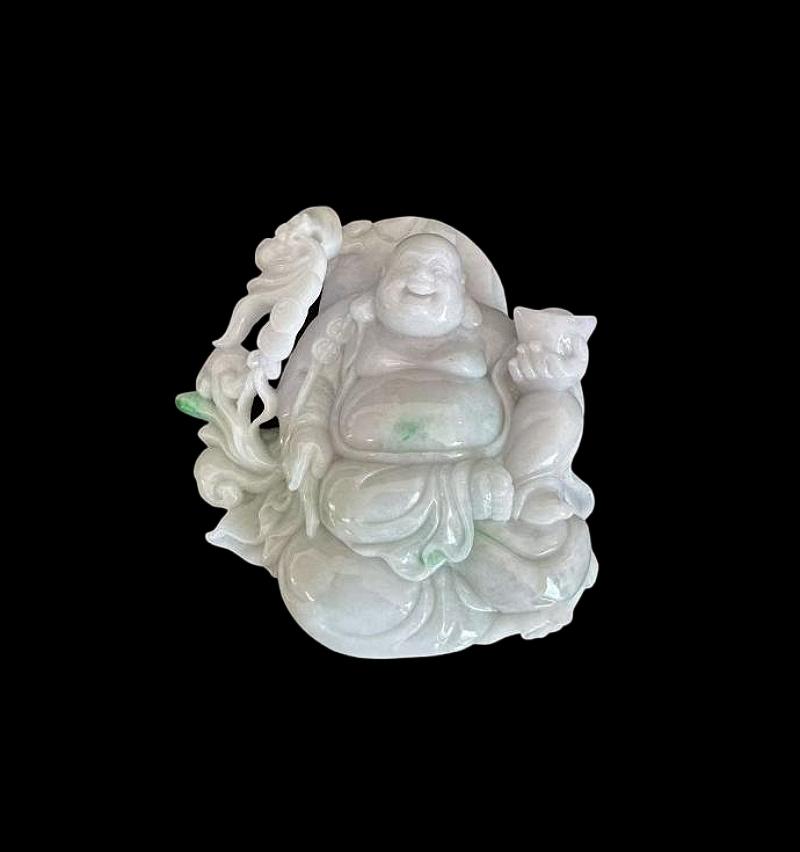 首页 >> 拍品展示 >>玉器类 >> 现代 豆糯种翡翠 弥勒佛造像