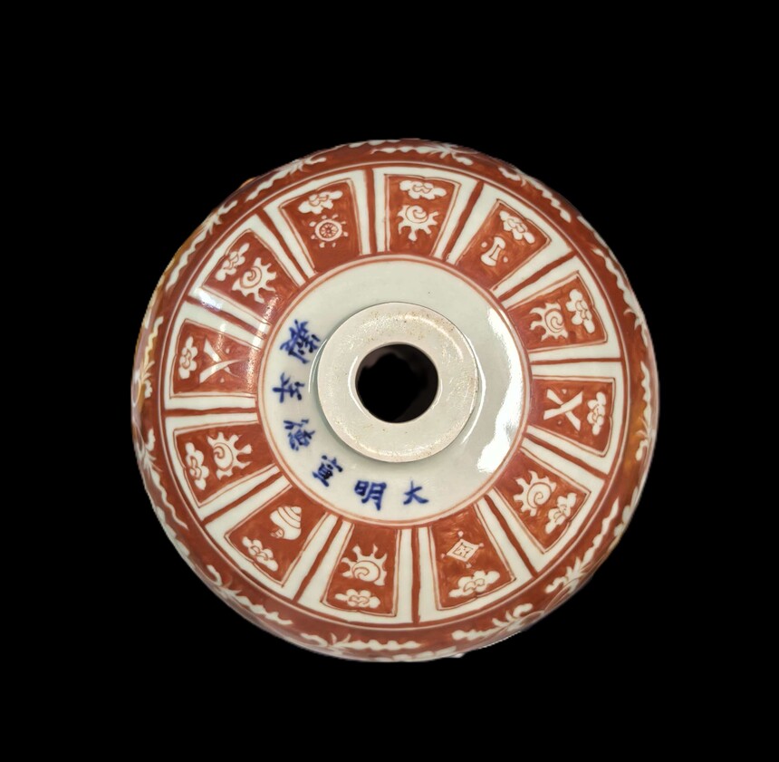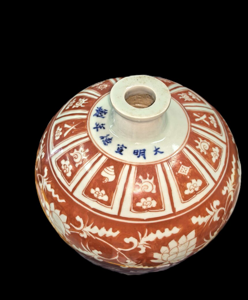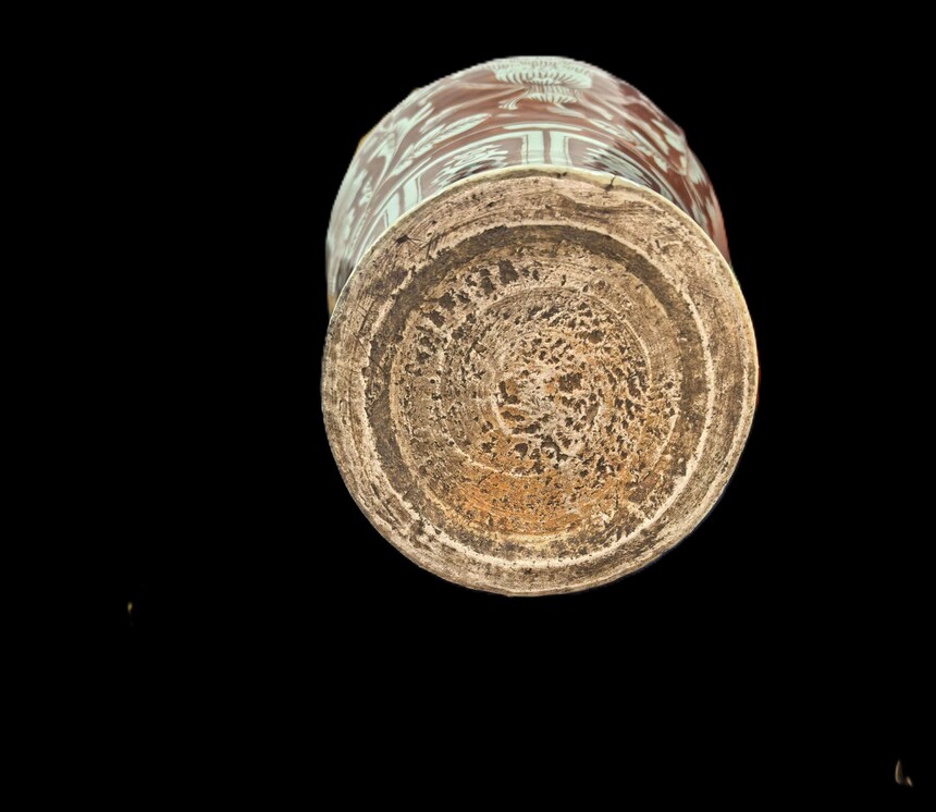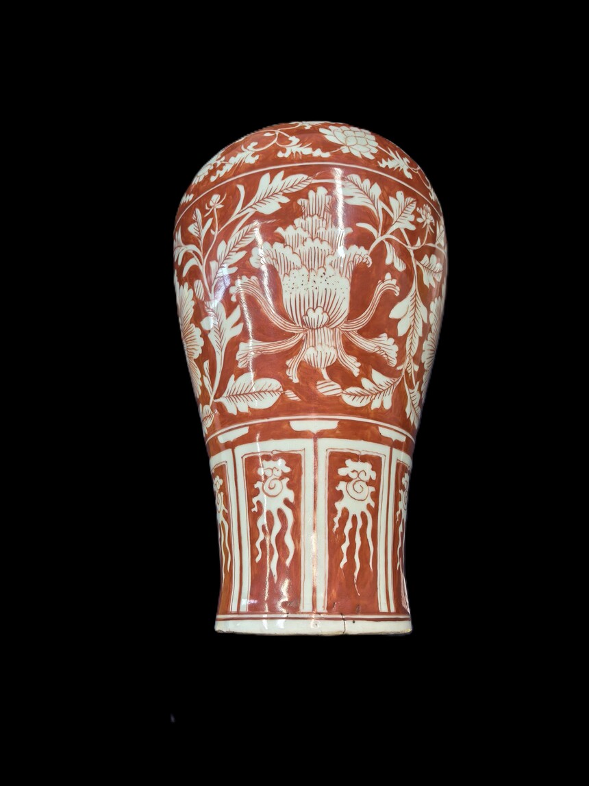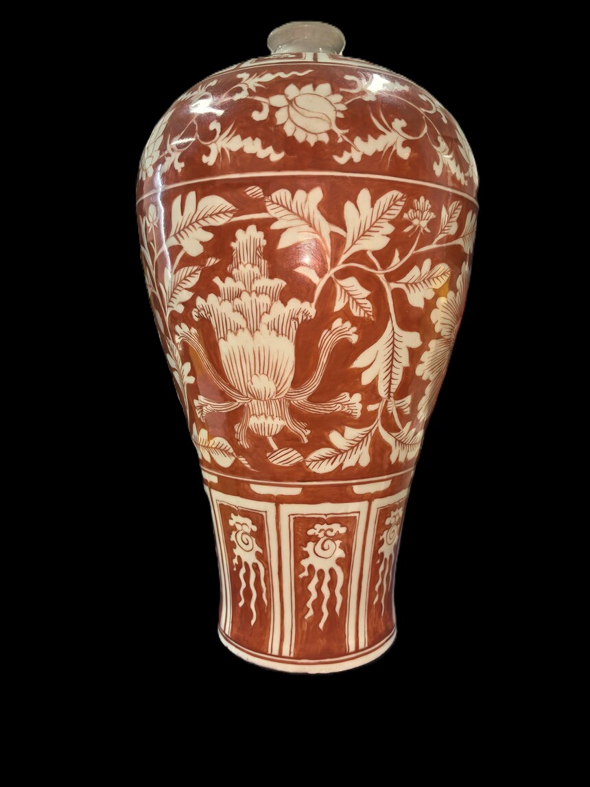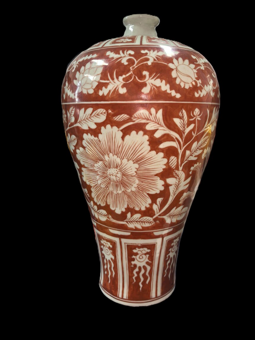 红釉留白花卉纹梅瓶