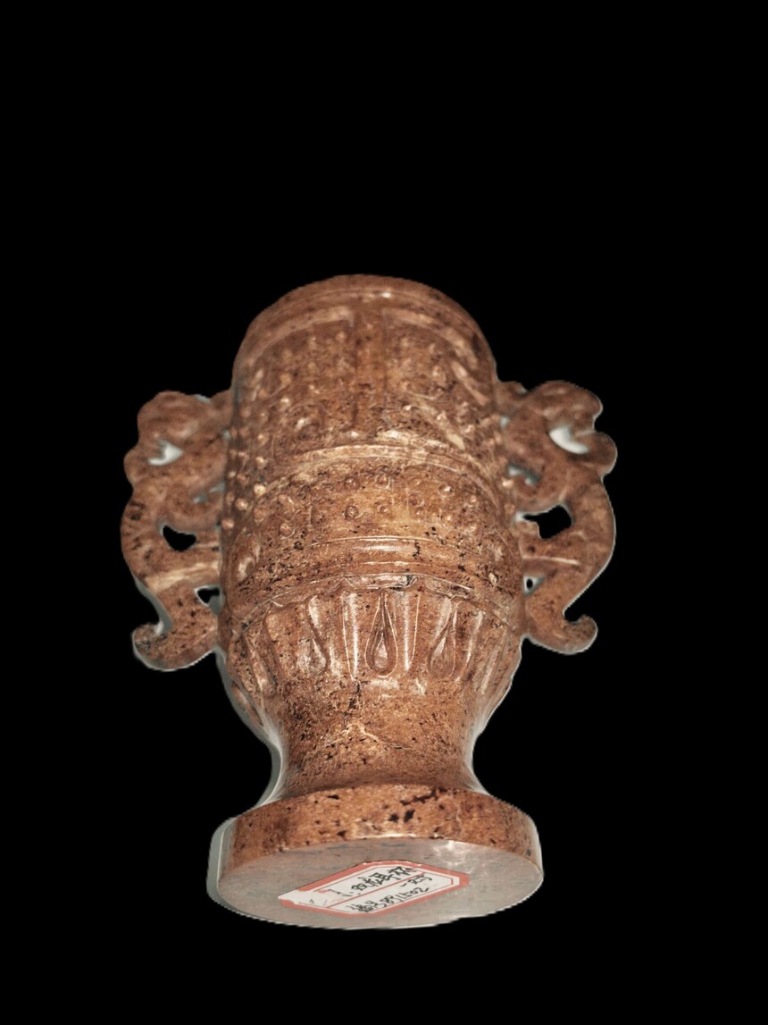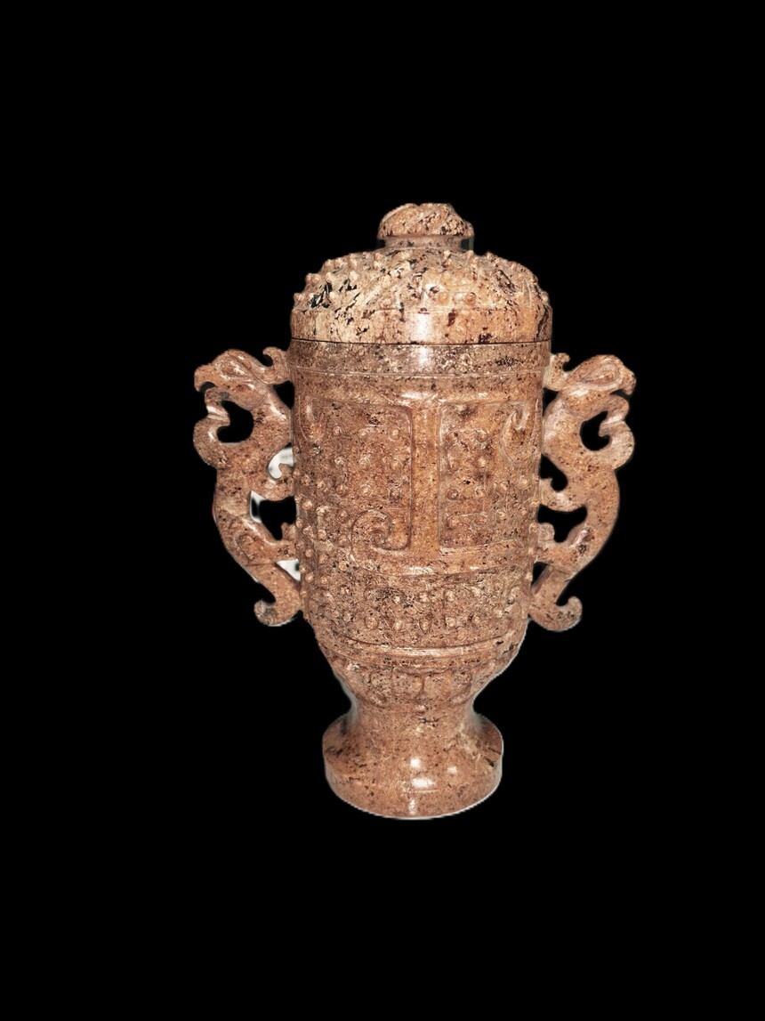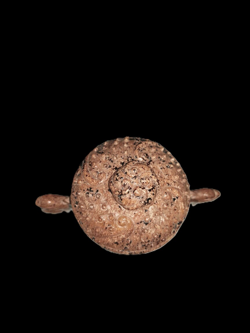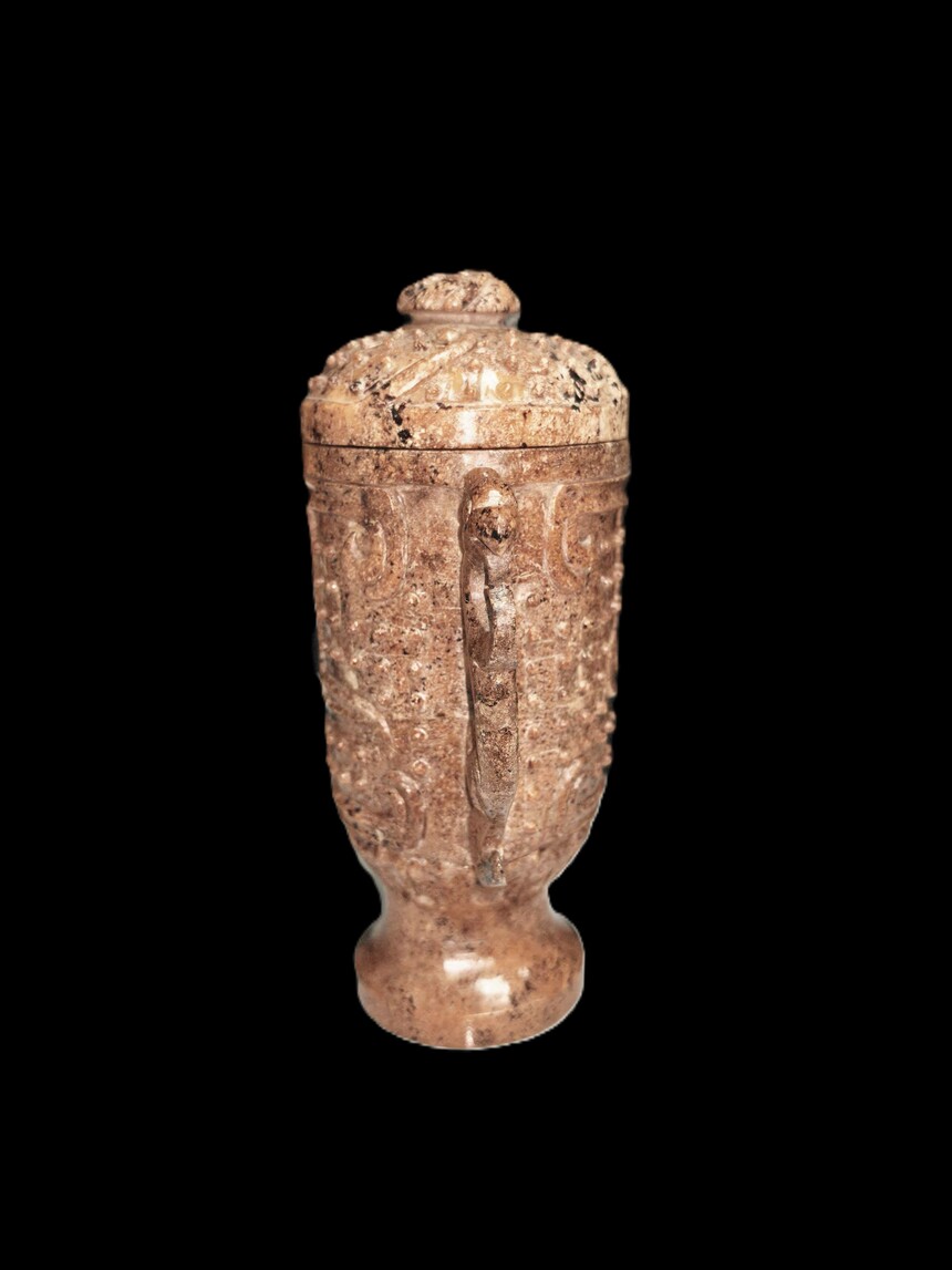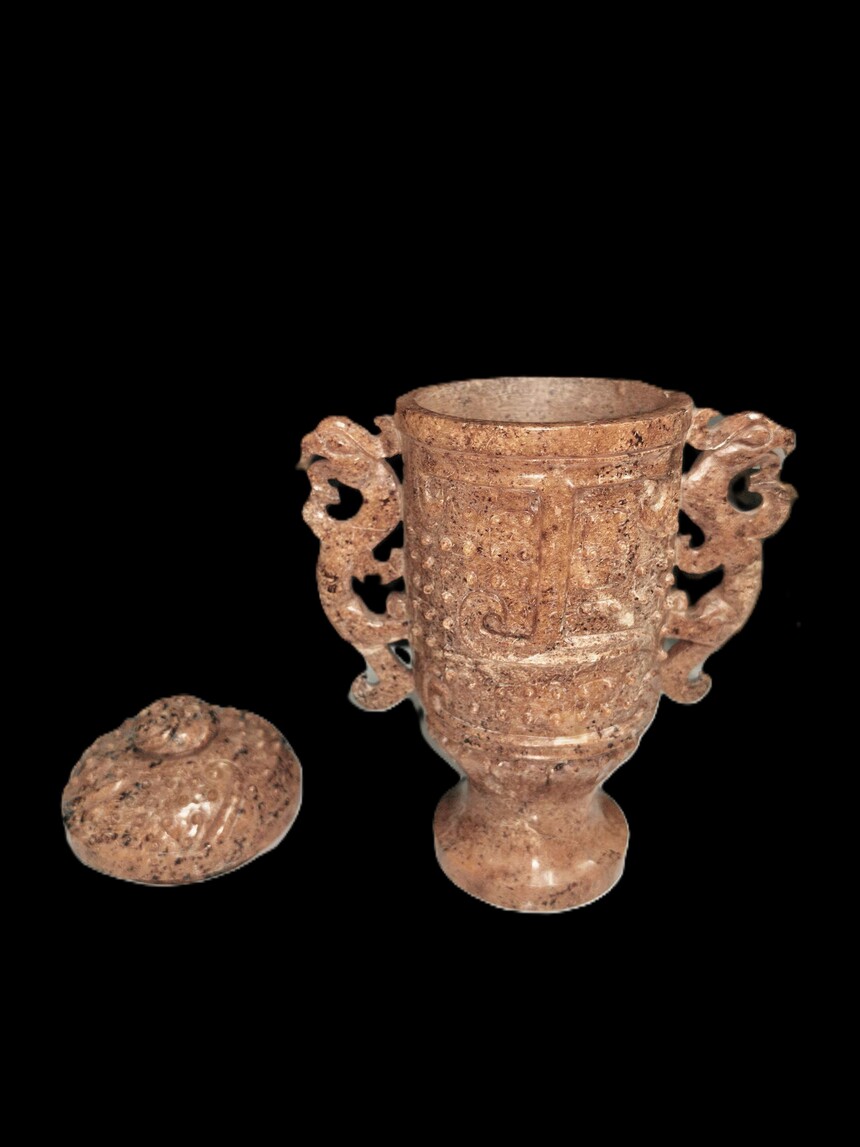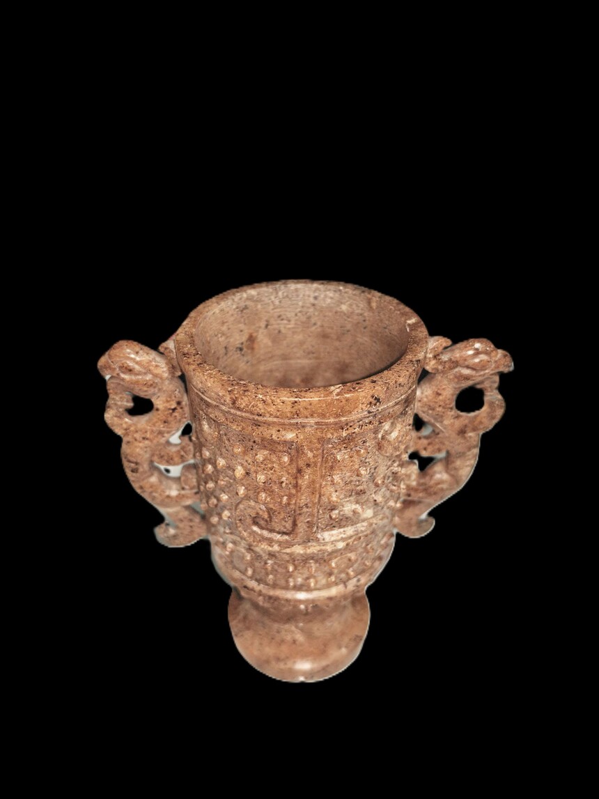 战国 玉雕谷钉纹双龙耳杯