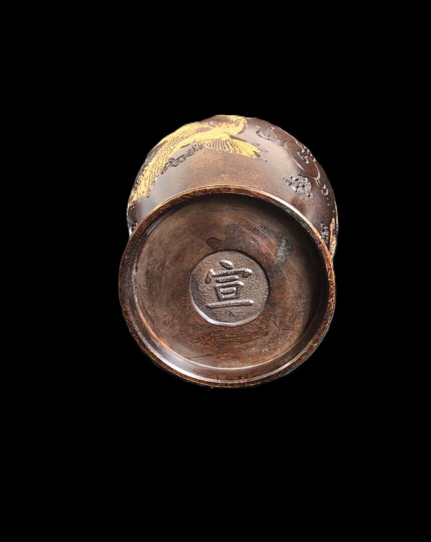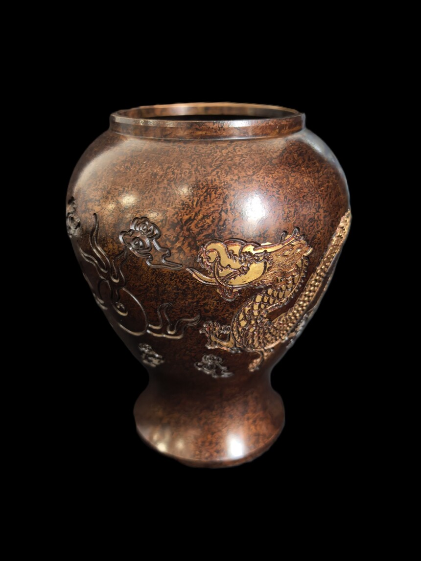 明 宣德款 铜鎏金龙凤呈祥将军罐