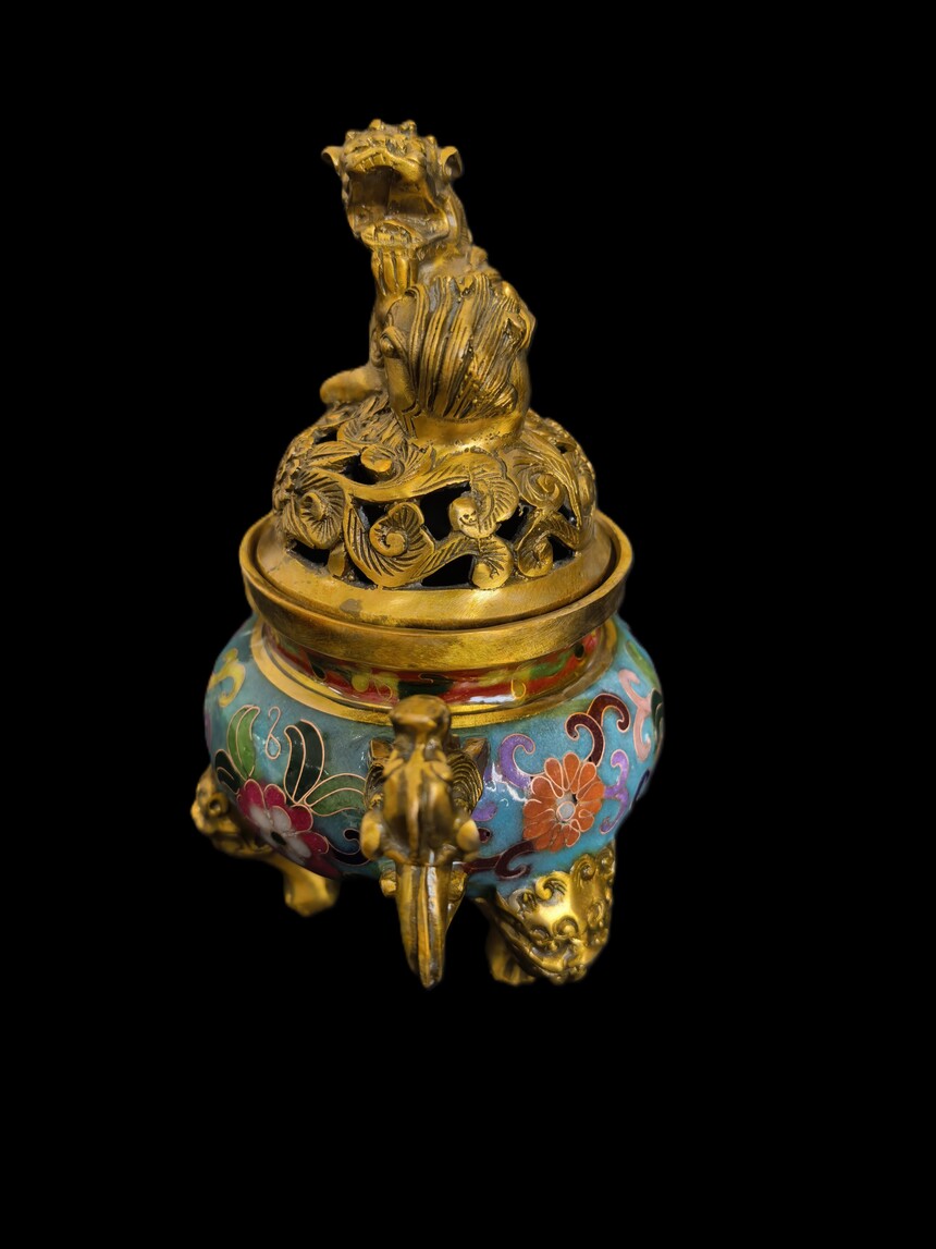 首页 >> 拍品展示 >>杂项类 >> 乾隆御制铜胎掐丝珐琅三足香薰炉