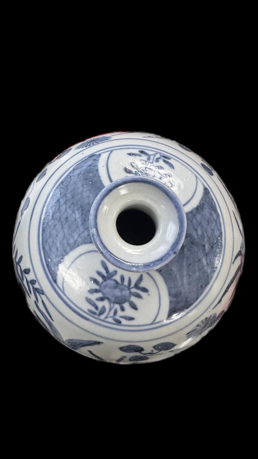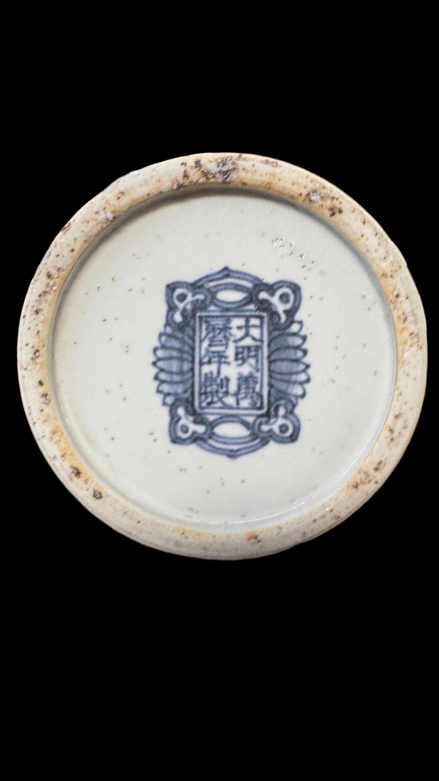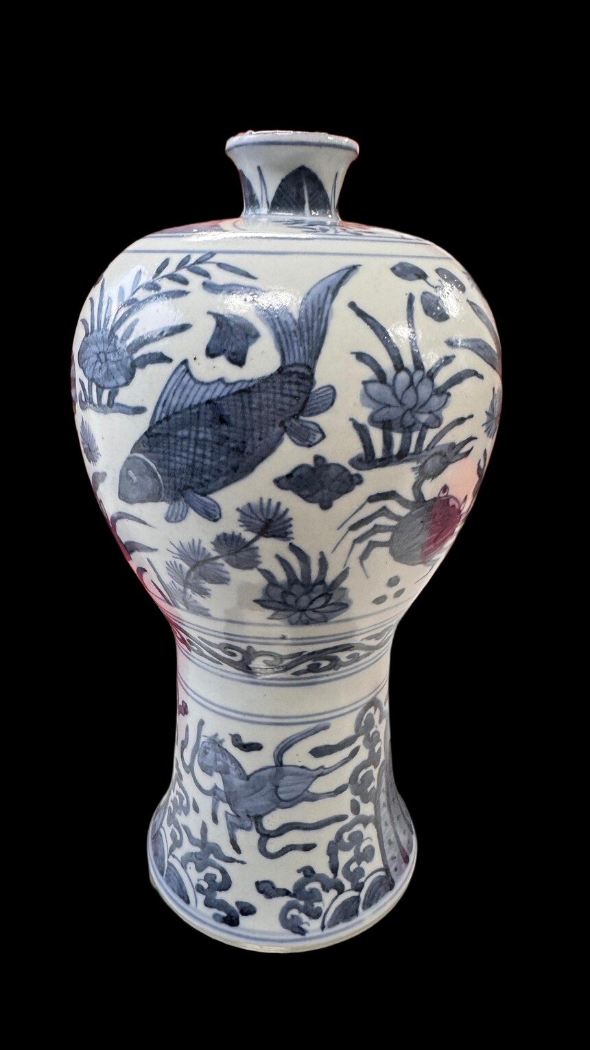 明代 大明万历年制 青花虾蟹鱼藻纹高足梅瓶